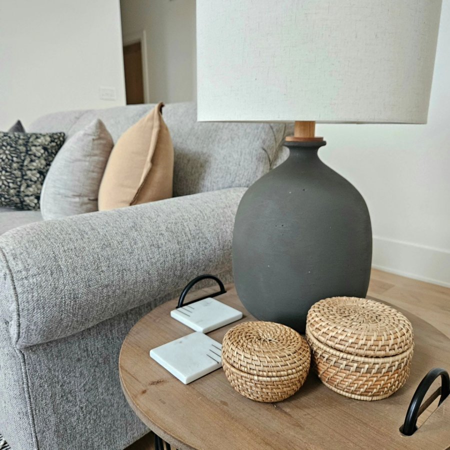Bring understated style and warm light to your room with the Resin Table Lamp from Hearth & Hand™ with Magnolia. This decorative table lamp features a gently curved base with a textured surface, and it’s paired with a drum-shaped fabric shade to diffuse light evenly with an ambient glow. Keep it at your side table or desk for a functional and stylish lighting solution that’s easy to match with an array of decor styles.